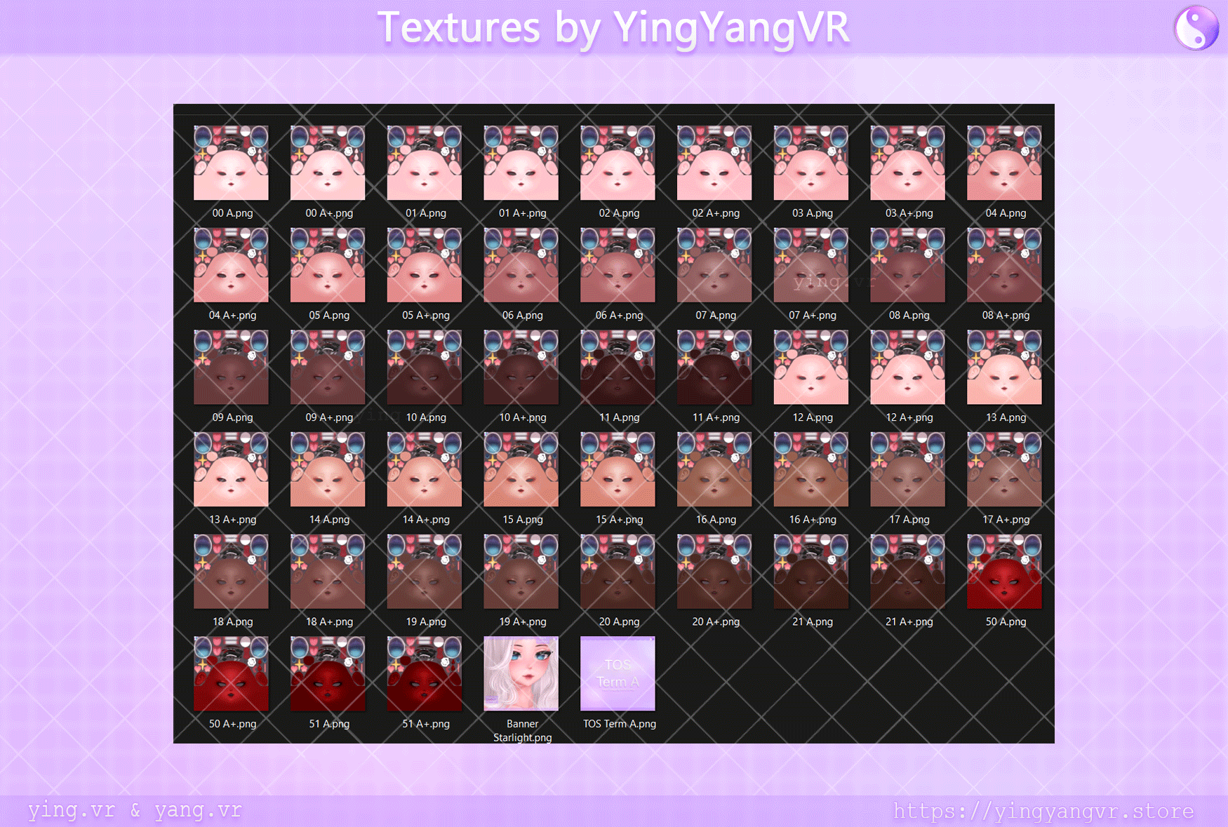 ﹥Matching colors: Skin Texture Pack by YingYangVR store(check the links below).